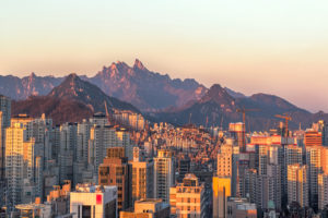 Landscape of seoul city building skylight and bukhansan in seoul,Korea